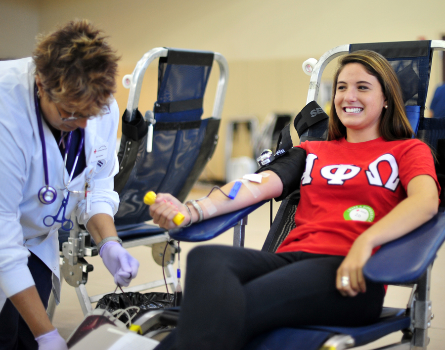 “Donating blood is obviously a huge service to others, so it was important to the Greek Week Committee to include this; this is the second year that we have included a blood drive among our philanthropy events,” says Teri Cugliari, director of Greek Life.