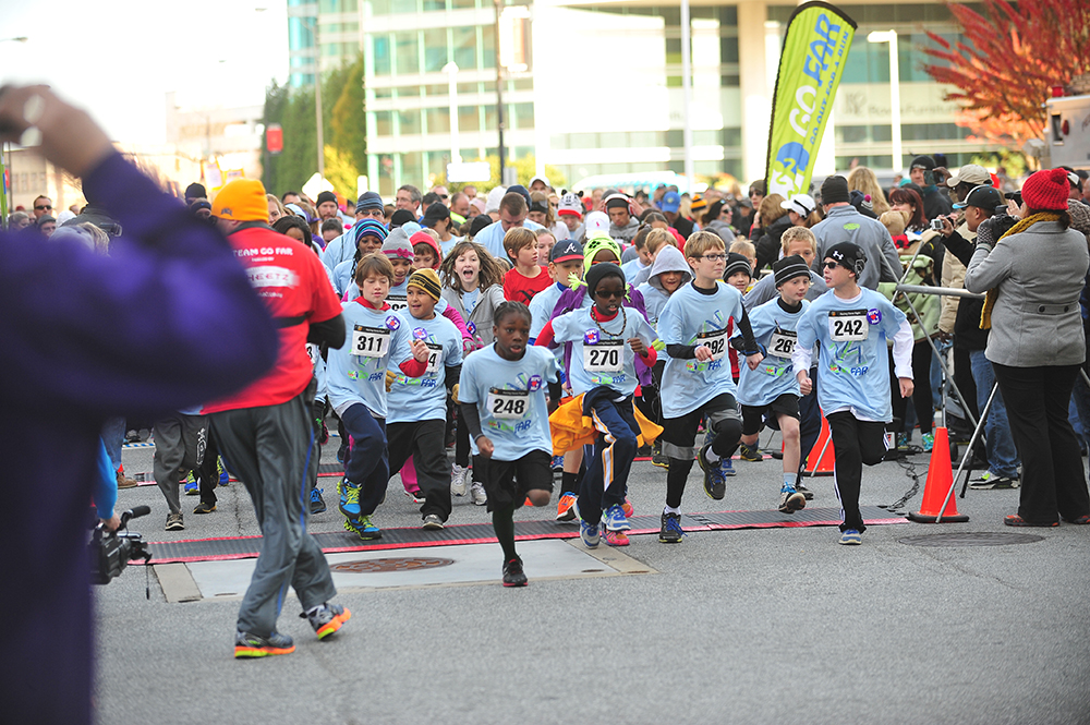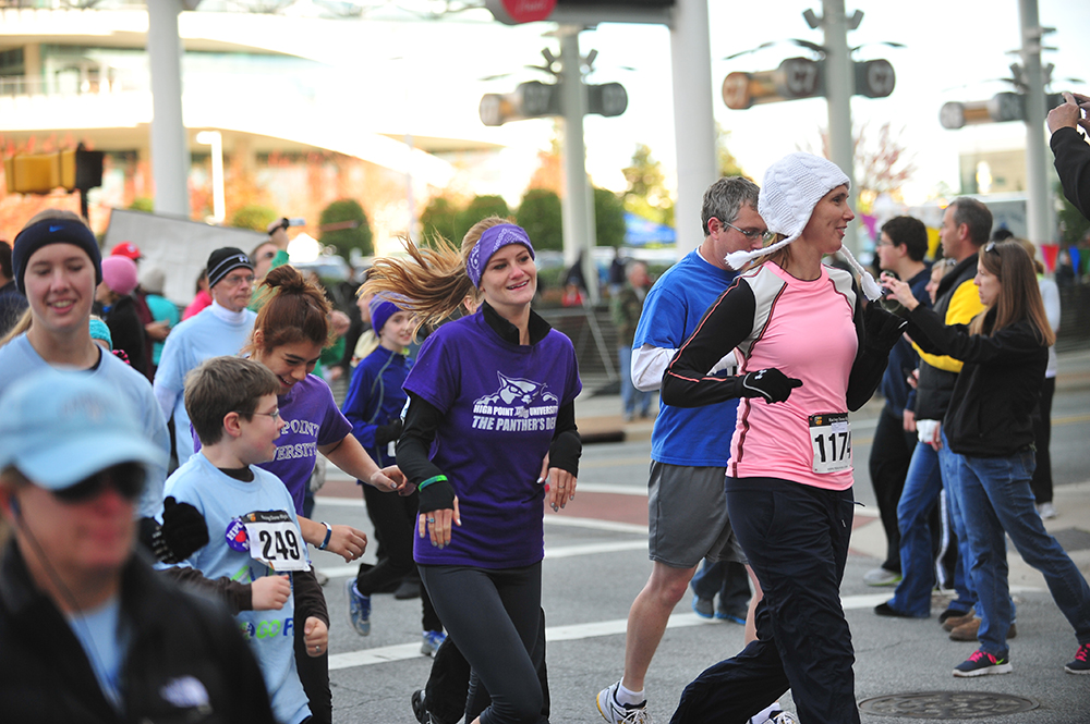 HIGH POINT, N.C., Nov. 12, 2013 – Hundreds of local elementary and middle school students raced against childhood obesity this weekend at the GOFAR 5k, and some High Point University students were running right alongside them.