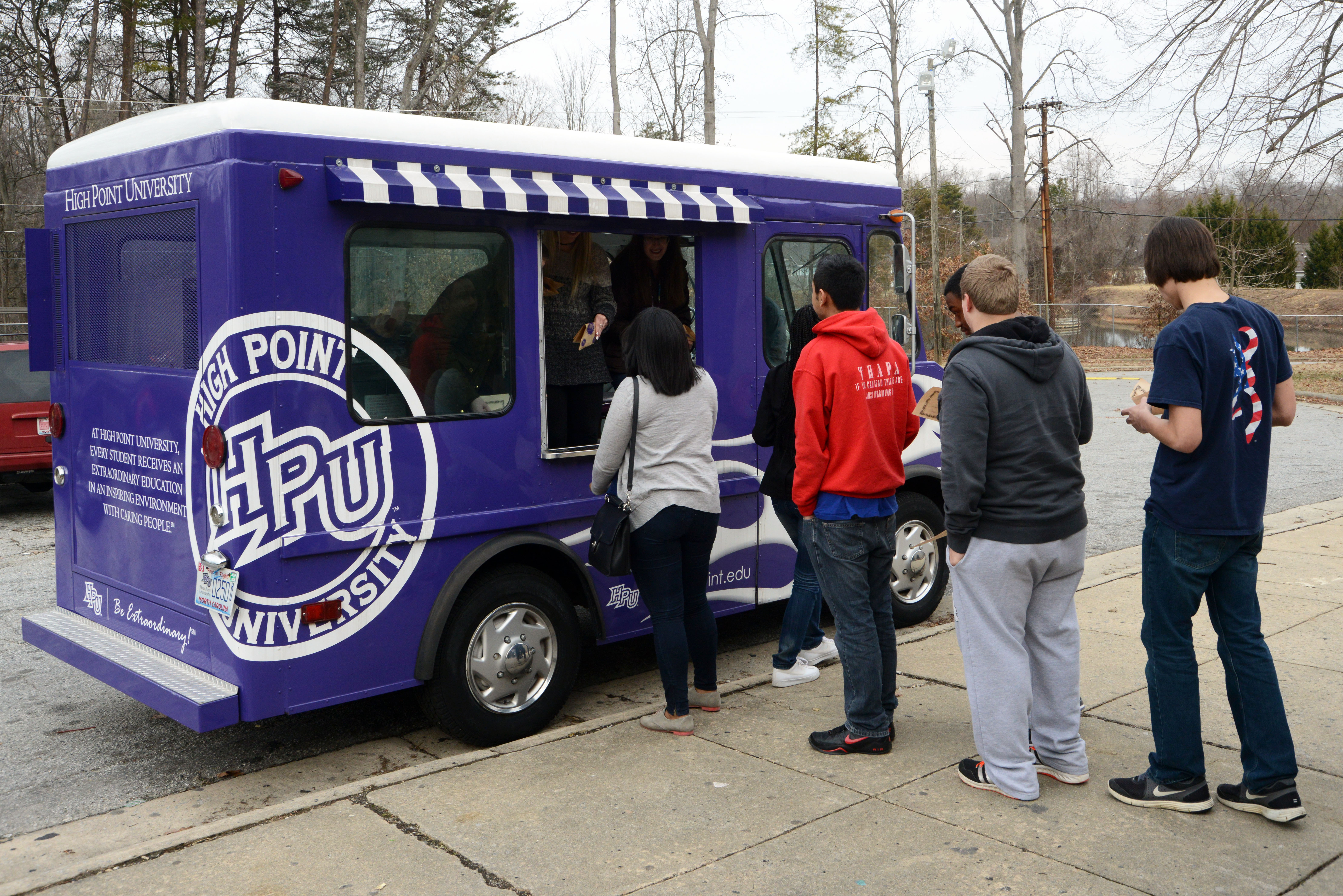 T. Wingate Andrews High School recently lost funding for its Incentives Program, which rewards students for outstanding work. To help keep the program going, HPU’s Teachers of Tomorrow offered to bring the HPU ice cream truck to the school and hand out cookies as a reward for students who completed their service learning hours last semester. Service Learning is Guilford County Schools initiative, and Andrews’ students have earned over 4,000 hours this semester alone.