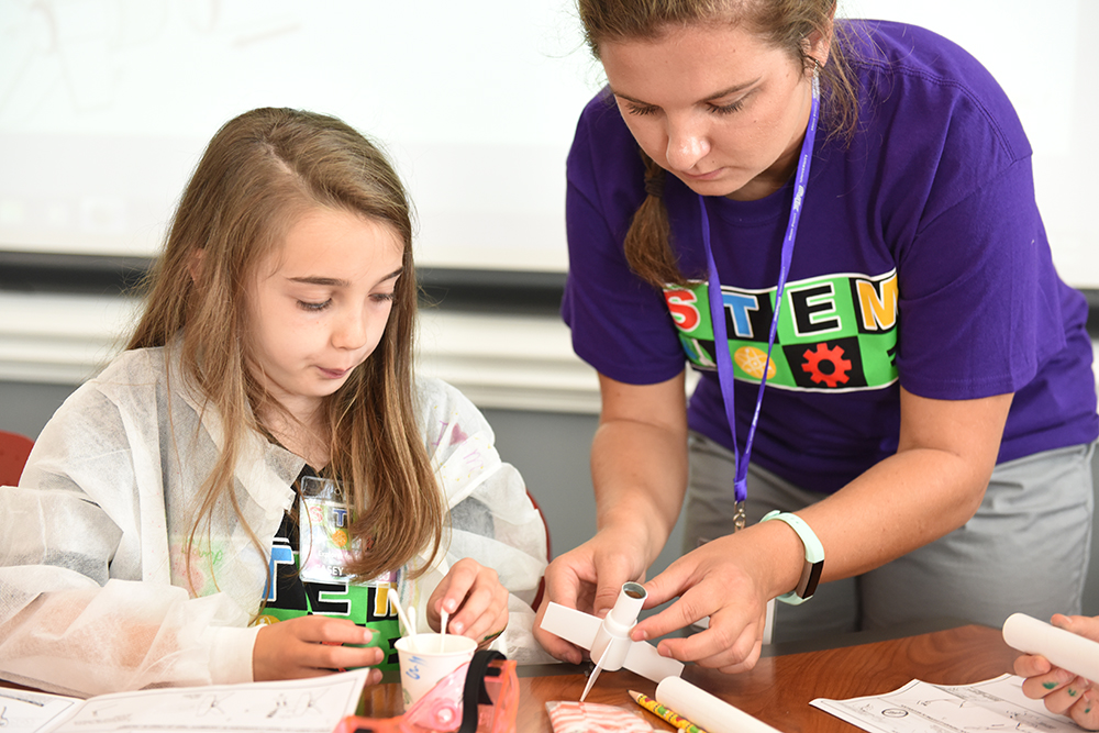 “The camp allows us to interact with the children and apply lesson plans we’ve built,” says Cassie Wodecki, a Statesville, North Carolina, native and graduate student. “I’ll definitely be using these lessons and activities in my future classroom. I see students learning more when they’re active and engaged, and this gives them a completely hands-on opportunity.”