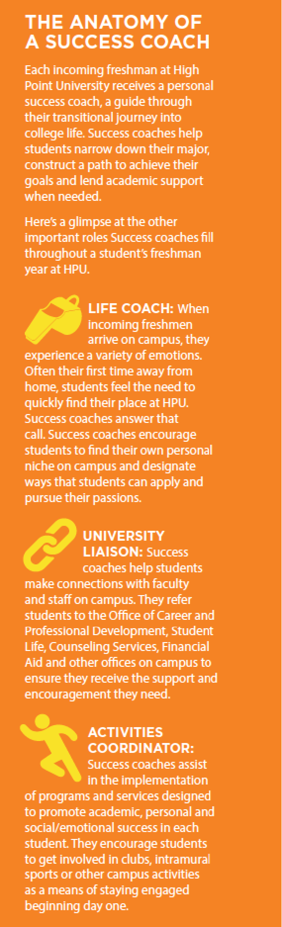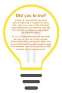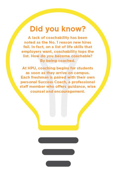 Every HPU freshman is paired with a success coach, a professional staff member who offers academic guidance and encouragement throughout a student’s first year at HPU.