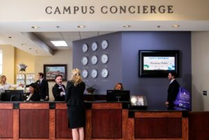 The goal of HPU’s Campus Concierge team is to improve the daily lives of students by providing a single source of knowledge for all campus and community information. Concierge keeps campus connected and informed by assisting students in scheduling airport transportation; making research appointments for the library and academic tutoring; serving as a library book drop-off location; offering restaurant and local business recommendations and reservations; distributing tickets for community enrichment events; and more. Additionally, all students receive a weekly e-mail from Concierge, which includes information about upcoming events and initiatives on campus.