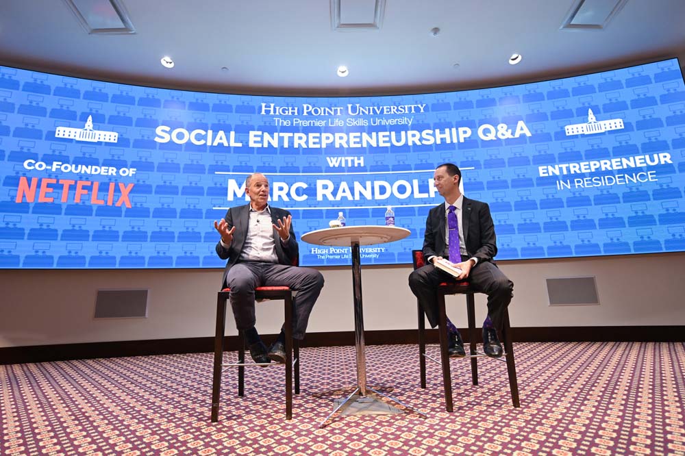 Co-Founder of Netflix Marc Randolph, High Point University’s Entrepreneur in Residence, recently returned to campus to share wisdom with students during HPU’s Innovation Summit. At High Point University, students are instilled with the life skills required to succeed outside of the classroom. With access to innovators such as Apple Co-Founder Steve Wozniak, HPU’s Innovator in Residence; Anchor of ABC News’ “Nightline” Byron Pitts, HPU’s Journalist in Residence; and best-selling author Scott McKain, HPU’s Corporate Educator in Residence, students are exposed to industry professionals starting as soon as they step foot on campus. Here are a few pieces of wisdom Randolph shared during his visit, edited for clarity and brevity: