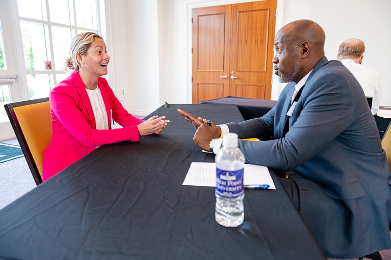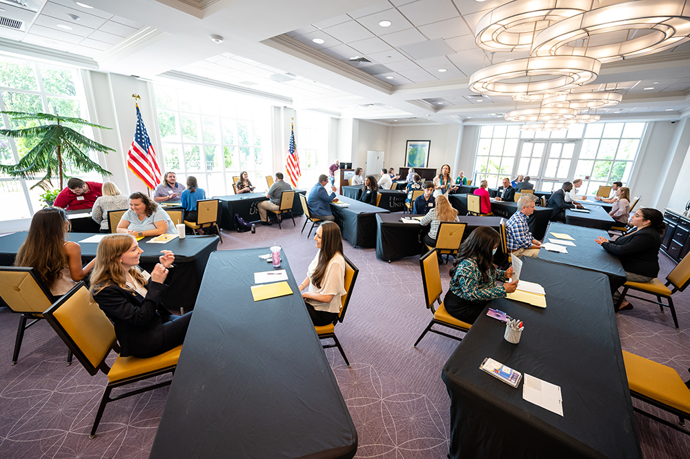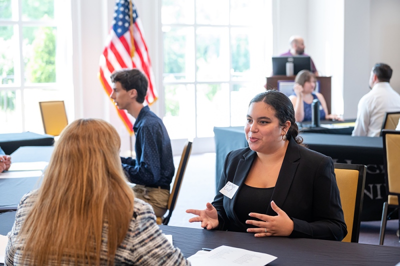 High Point University students wrapped up their summer research in SuRI (Summer Research Institute) with the Elevator Pitch event. It’s a speed dating-style event that helps the students explain why their research matters and how to articulate it to someone outside of their field.