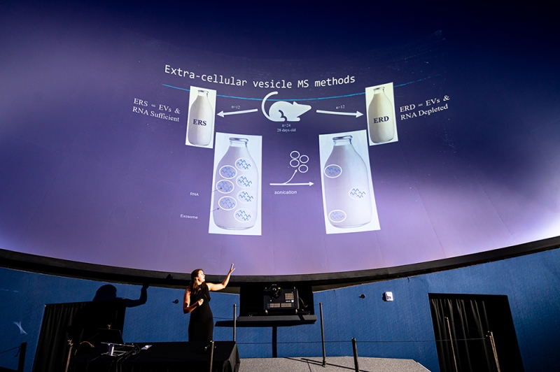 Students in SuRPs (Summer Research Program in the Sciences) also concluded their research by presenting their projects on the impressive dome of the Culp Planetarium in the Wanek School of Natural Sciences, and on posters throughout the lobby. Their research ranged from studying star systems in a project funded by NASA, to testing different combinations of drugs on bacteria growth and reproducing different minute films of certain polymers.