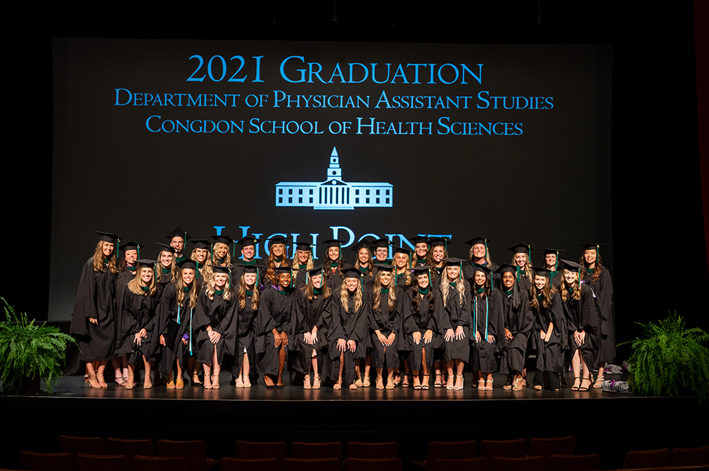 HIGH POINT, N.C., August 26, 2021 – High Point University is celebrating the graduates from the fifth physician assistant (PA) class as they now prepare to head into the professional medical field. Thirty-three students, who were selected out of more than 1,400 applicants, were presented with the Master of Physician Assistant Studies degree on August 14.