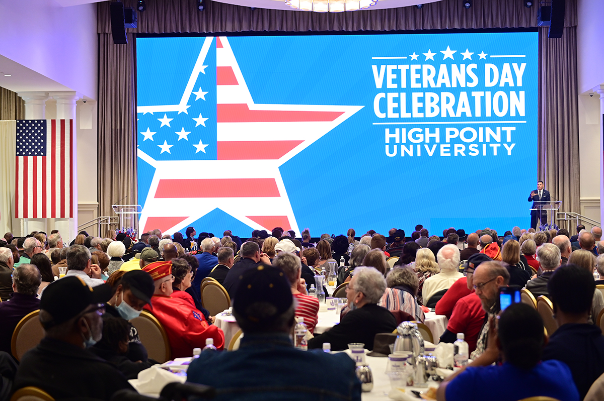 The program will include a complimentary breakfast, a patriotic salute and will recognize students leading initiatives to support veterans. The North Carolina Brass Band and the HPU Chamber Singers will provide patriotic music. HPU students will honor veterans with a celebratory welcome and a special gift.