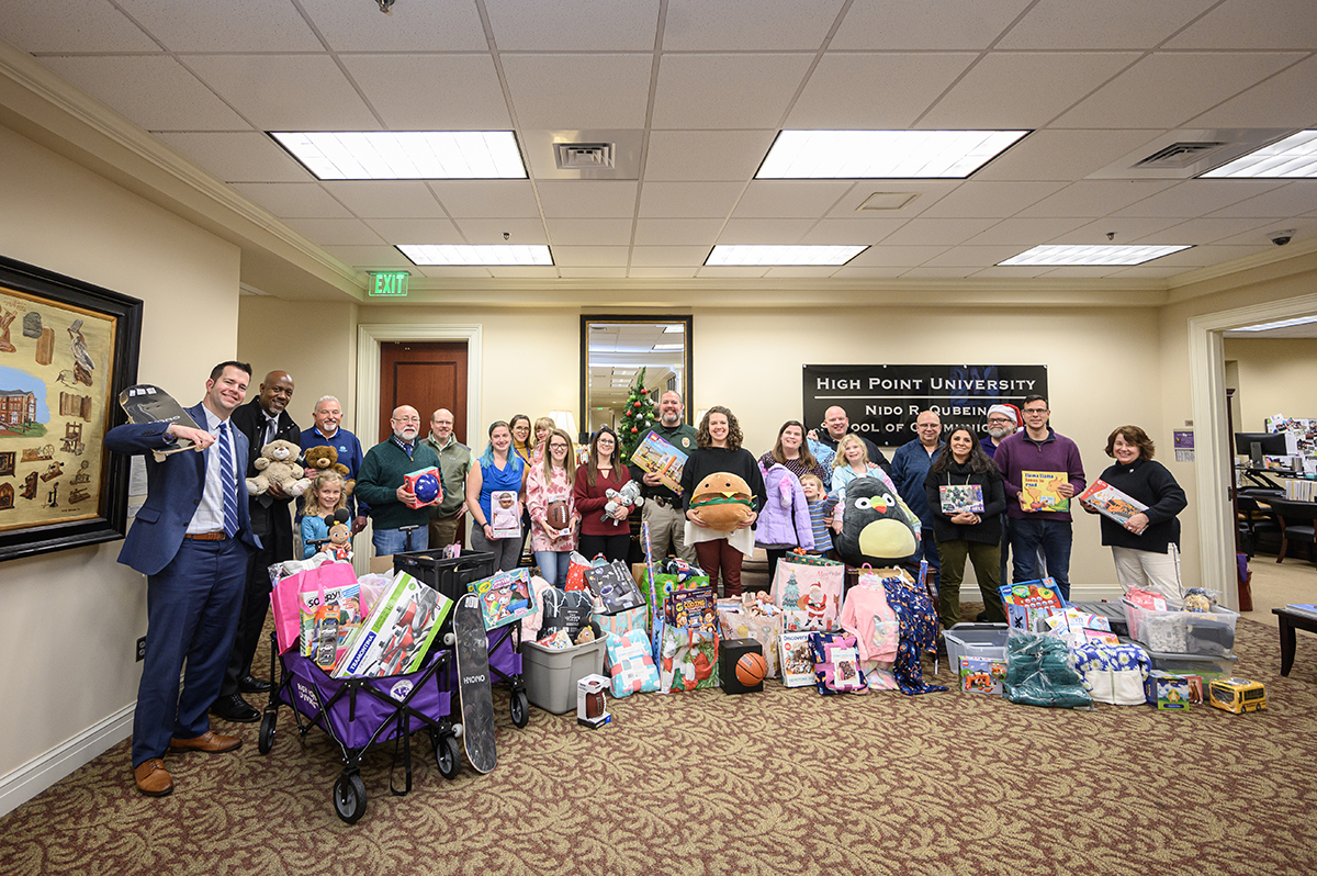 HIGH POINT, N.C., Dec. 16, 2022 – Christmas is just a week away, but faculty in the Nido R. Qubein School of Communication are giving gifts early through their 10th annual Operation Elf tradition to help local nonprofits provide gifts to families.