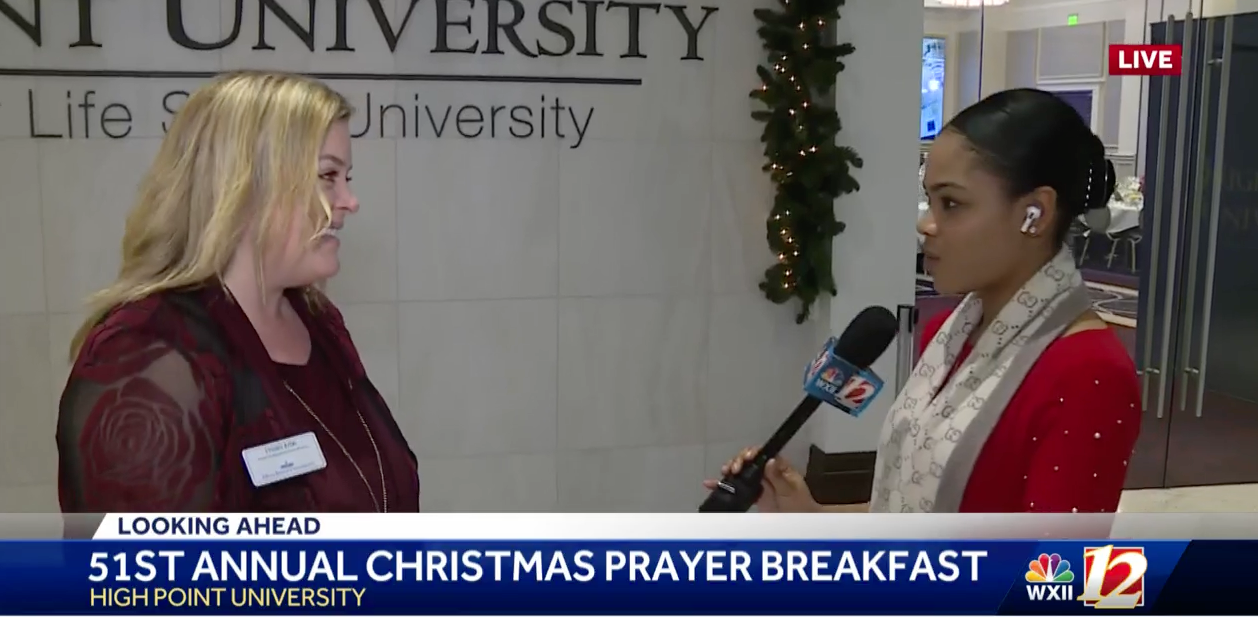 High Point University welcomed more than 1,000 people to the 51st Annual Christmas Prayer Breakfast on Dec. 9, one of HPU’s timeless traditions. Lyndsey Ayers, assistant vice president of university relations, shares all the free holiday events on campus for the community to enjoy.