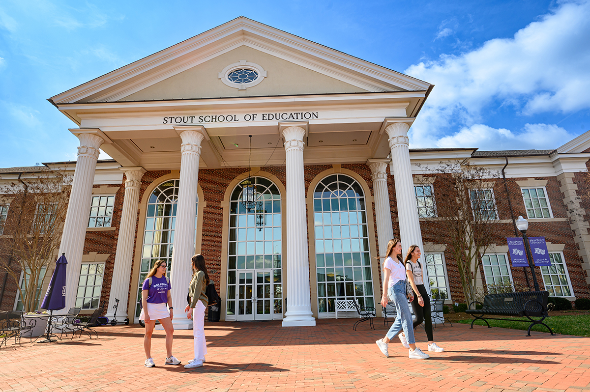 High Point University’s Stout School of Education earned full seven-year accreditation from the Association for Advancing Quality in Educator Preparation (AAQEP) for its teacher, principal and superintendent licensure programs. Pictured are education majors walking outside the Stout School of Education.