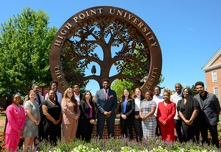 High Point University is welcoming 16 recent college graduates as AmeriCorps VISTAs (Volunteers in Service to America) to provide thousands of hours of service to local organizations. Pictured in the front row from left to right are Iyanna Salters, Lauren Riley, Zakiya Payne, Sarah Barlow, Dani Rubio, Lovelle McMichael, Abby Forrence, Recia Wright, Ja’Niya Rice and Dihandra Williams. In the back row from left are Josh Cameron, Hassan Allah, Martin Enriquez, Kathryn Shumaker, Kyle Smith, Grant Hines and Demetri Turner.