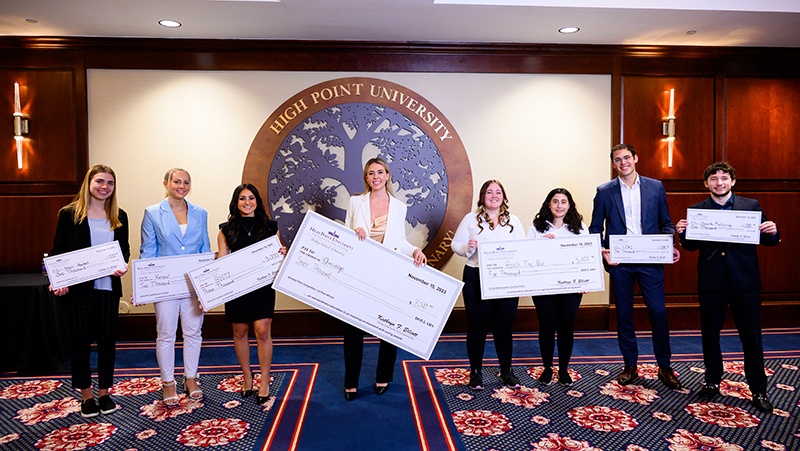 HIGH POINT, N.C., Dec. 1, 2023 – High Point University students pitched their business ideas to a panel of judges and earned thousands of dollars in start-up funds during the annual Elevator Pitch Competition on Nov. 15.