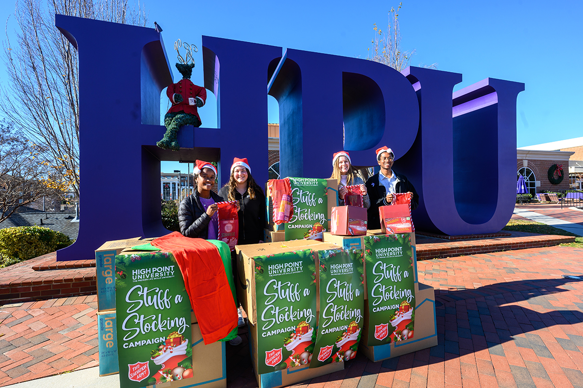 HIGH POINT, N.C., Dec. 13, 2023 – High Point University’s Student Government Association and other students filled 600 stockings for senior citizens in the community as part of the Salvation Army of High Point’s Stuff a Stocking Campaign.