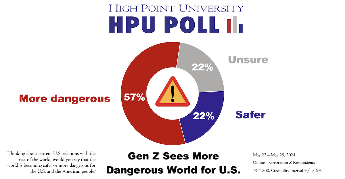 “While there is a good deal of agreement between these two groups about the role of the U.S. in the world and the danger the U.S. faces, there are some differences in how they see the threats themselves,” said Dr. Martin Kifer, director of the HPU Survey Research Center and chair of HPU’s political science department. “Gen Z is living through an era that is different from the formative years of earlier generations. Their interpretations of U.S priorities will be important for politics and foreign policy in the future.”