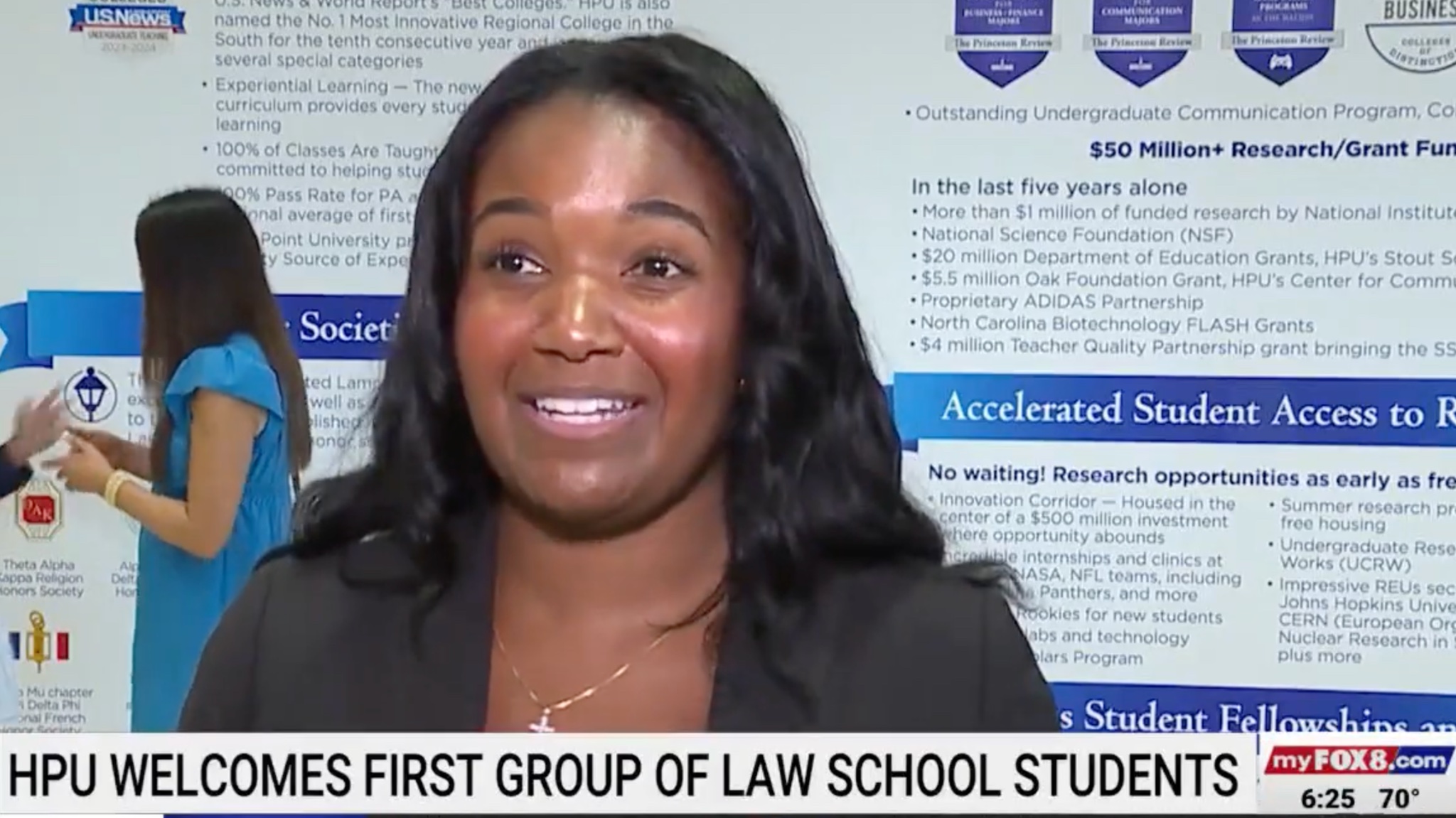 High Point University recently welcomed the inaugural class of the new Kenneth F. Kahn School of Law inside Congdon Hall on HPU’s campus. Watch this special news story about more than 70 law students, who started class Aug. 19 as part of the largest total student enrollment in HPU history at more than 6,200 students.