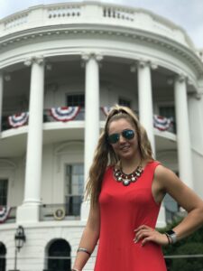 “Interning in the White House has opened my eyes to so many career options I didn’t know existed,” she says. “I have so much respect for the work these people are doing and I have thoroughly enjoyed my time here being surrounded by the talented staff members. I would love to return to Washington, D.C., in some capacity, whether that be working for the administration or in the private sector.”