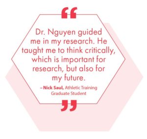 Saul wanted to pursue his interest in preventing injuries. That’s how he met Dr. Yum Nguyen, associate professor of athletic training.