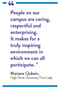 Mariana Qubein received her biology degree from HPU when it was still known as High Point College. When her husband, Dr. Nido Qubein, became HPU’s seventh president in 2005, she returned to her academic roots, recruiting professors and students to create an arboretum committee.