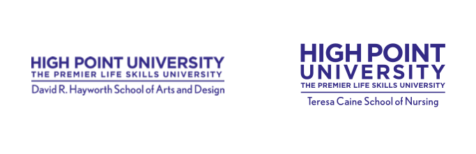 The schools within High Point University are considered sub-brands. They are each unique and offer different programs, but they all fall under the umbrella of High Point University. Sub-brands may not create their own unique logos.
