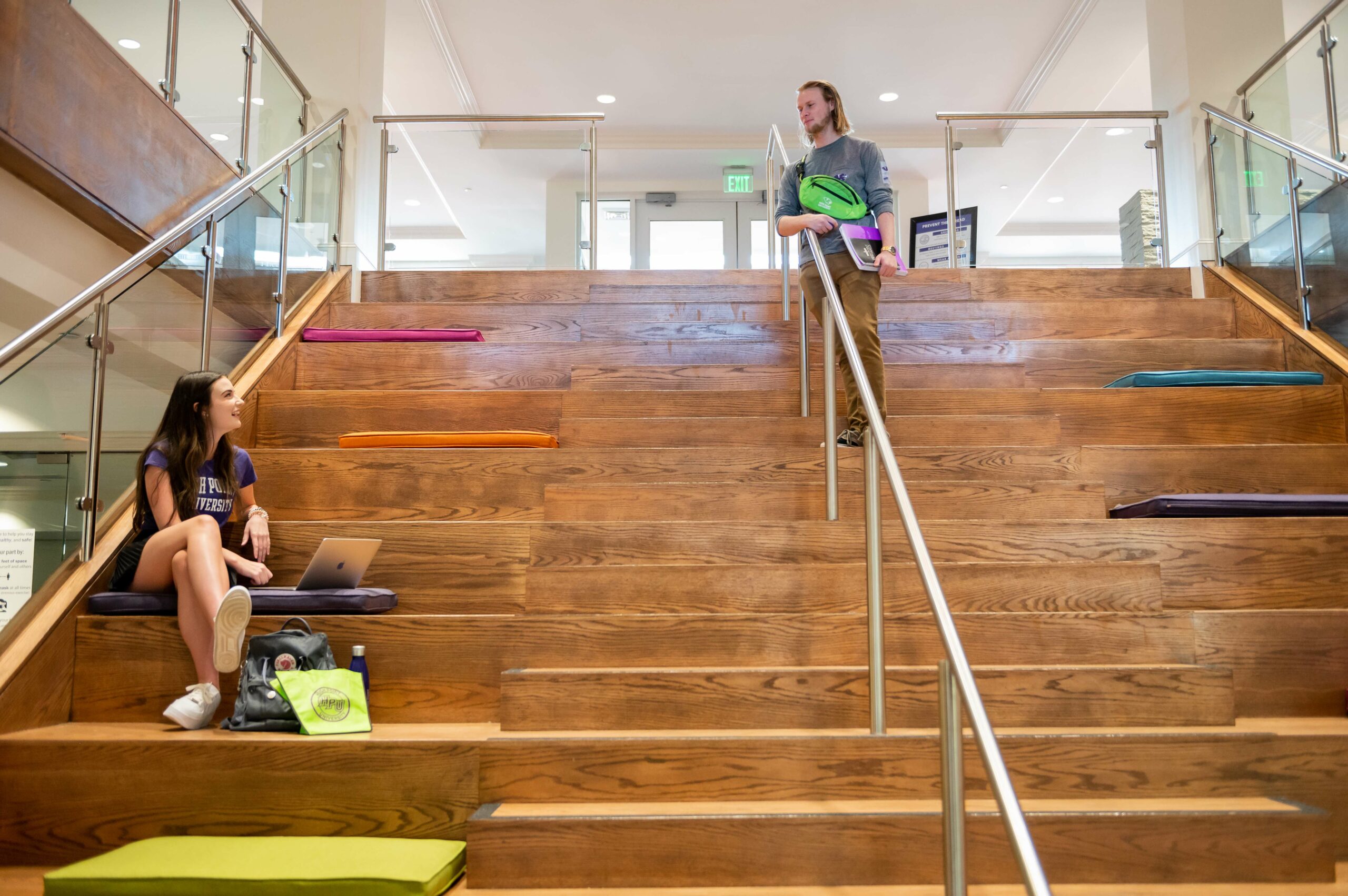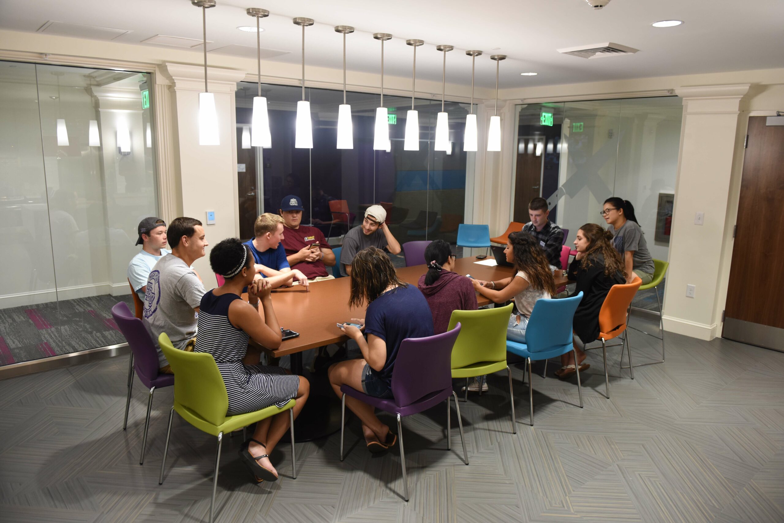 The 150,000-square-foot living and learning community houses 308 students in the heart of campus and includes a large community kitchen, a game and theater room, a recreation facility and several group and private study spaces.