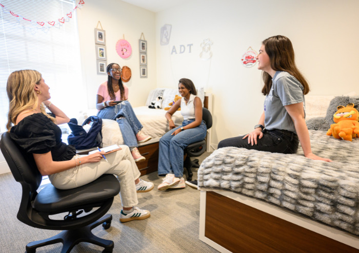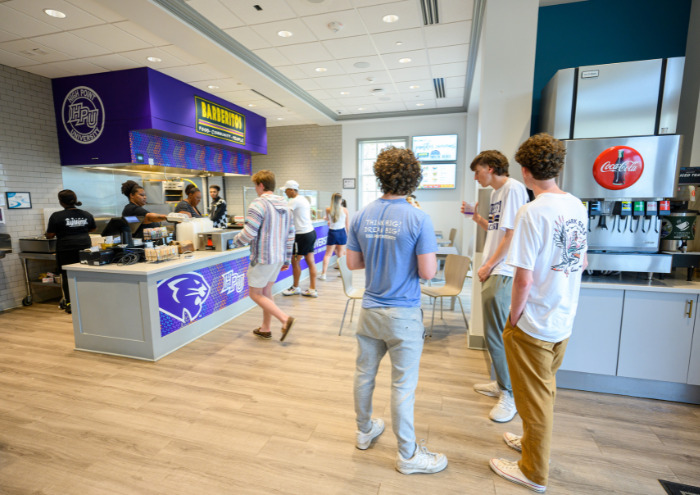 Panther Commons offers double rooms and single suites for upperclassmen and graduate students. This new residence hall will also include several retail shops on the first floor, including a hibachi restaurant, nail salon, mail service, fitness studios, study rooms and more, serving as a hub of activity and engagement.